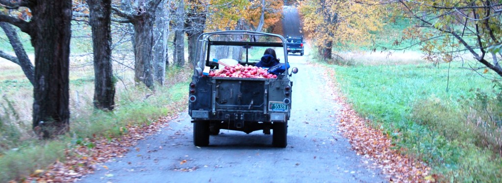 We sugar in the spring, and you will have the opportunity to taste all of the Vermont syrup grades to find out which one is really your favorite. In the fall we press cider, some of which we boil into apple cider syrup which will also be available for tasting and buying.