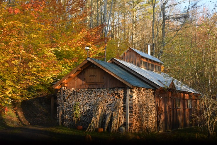 We collect from both buckets and tubing and boil on a wood fired arch. There is no vacuum, no automatic draw-off and no Reverse Osmosis. Just good old fashioned Vermont maple syrup. On your way just up the road you can stop at the Fat Toad Farm store (787 Kibbee Rd) and pick up some of their award-winning caramel.