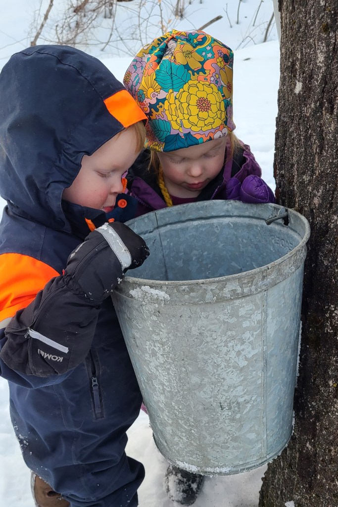 The buckets and lines are up and even with the odd weather, sap has been coming in to the sugarhouse and we have been making delicious syrup.